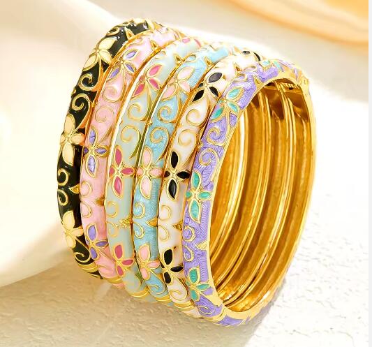 18k Gold Plated Enamel Strawberry Cuff Bangle Bracelet for Women