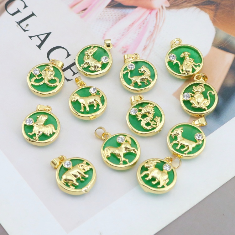 18K Gold Plated Brass Chinese Zodiac Green Jade Pendants: Unisex Daily Wear & Gift Jewelry Details & Picture Total: 47 views