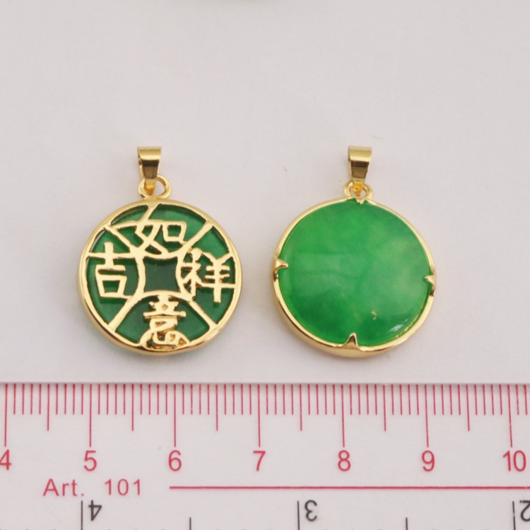 Crafted from quality materials, including vibrant green jade and metallic settings in gold or silver tones.