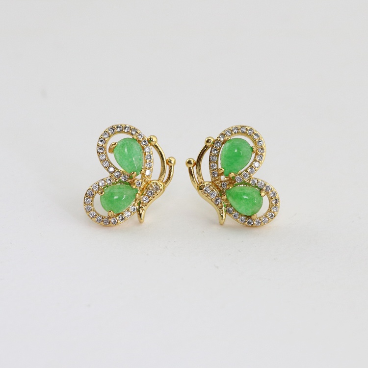 Mini 18K Gold Plated Exquisite Butterfly Crystal CZ Micro Pave Dainty Jade Stud Earrings for Anniversary Birthday Gift Details & Picture Total: 21 views