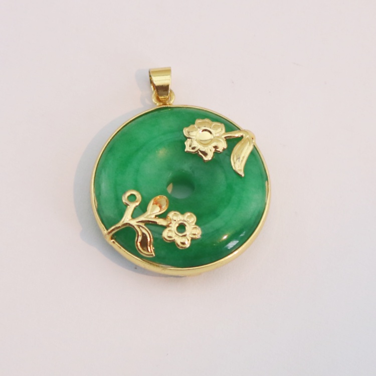 Traditional Chinese Green Jade Donut Pendant with Floral Accents, Natural Gemstone Energy Charm Details & Picture Total: 46 views